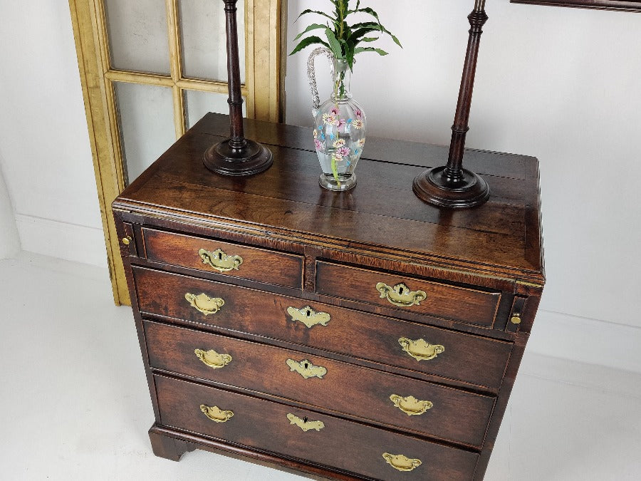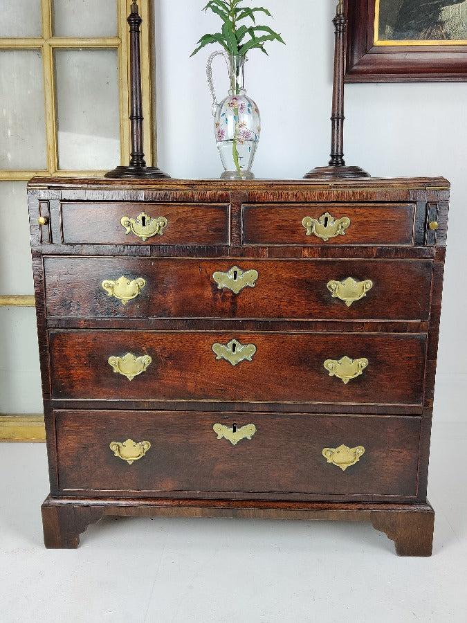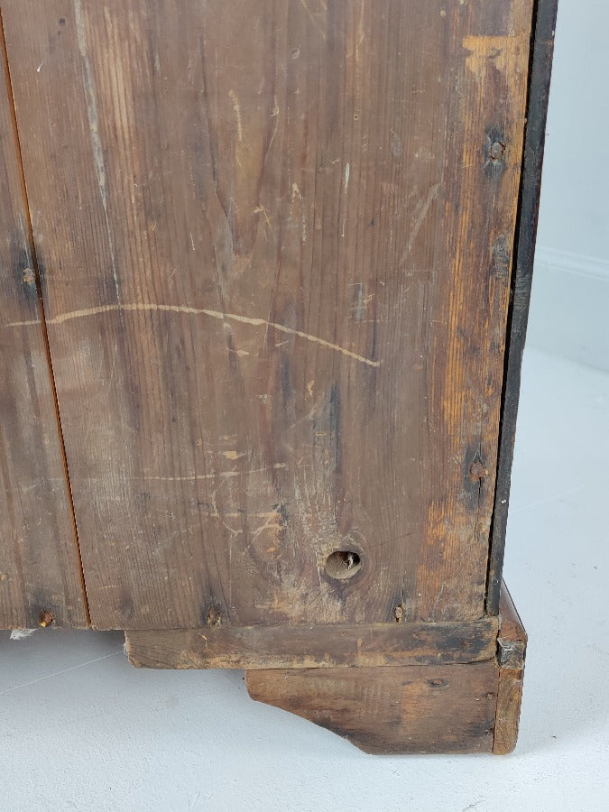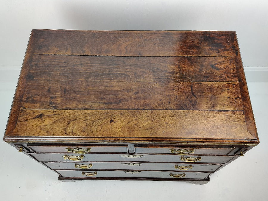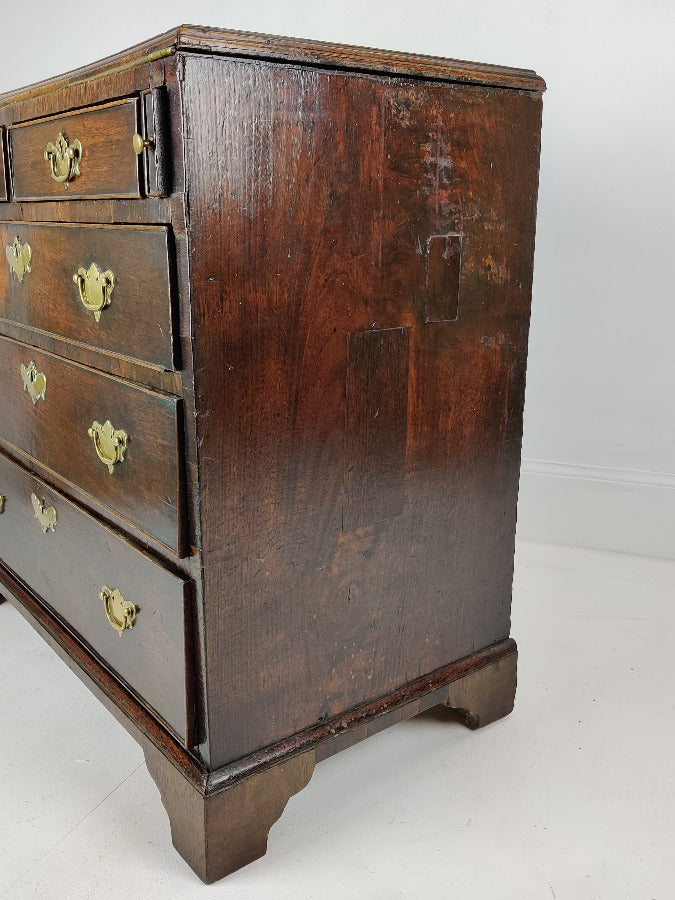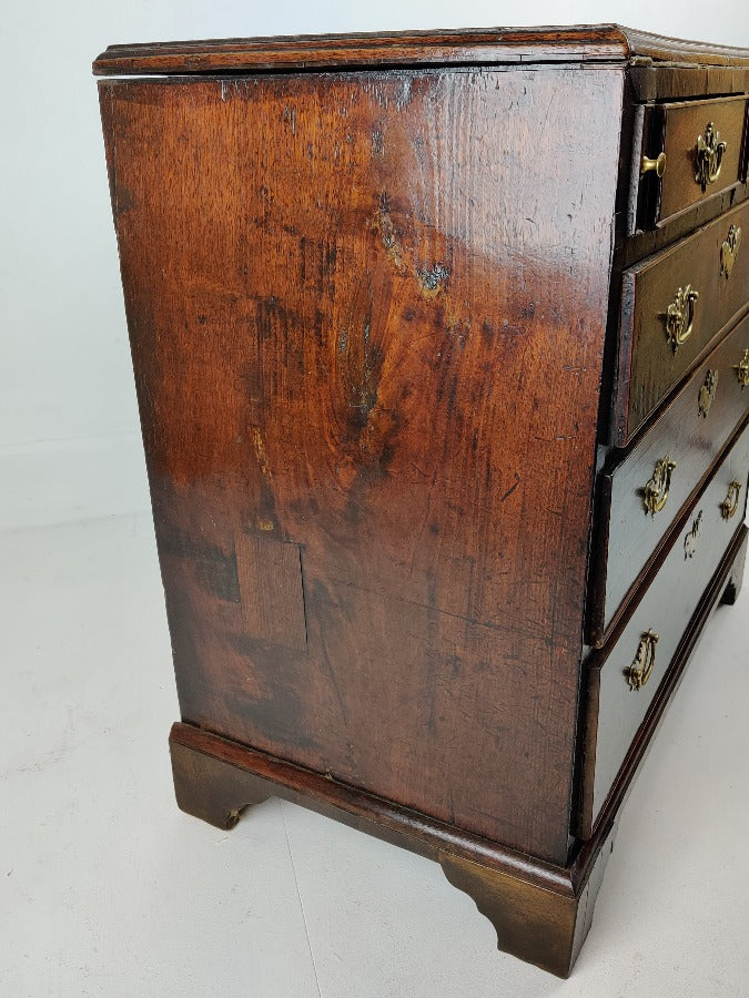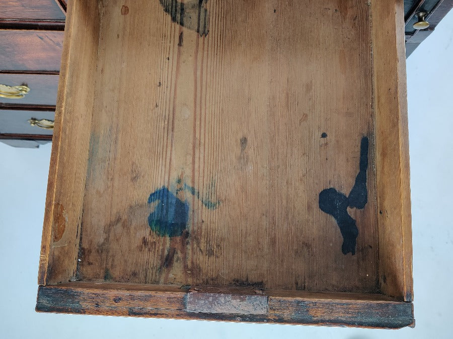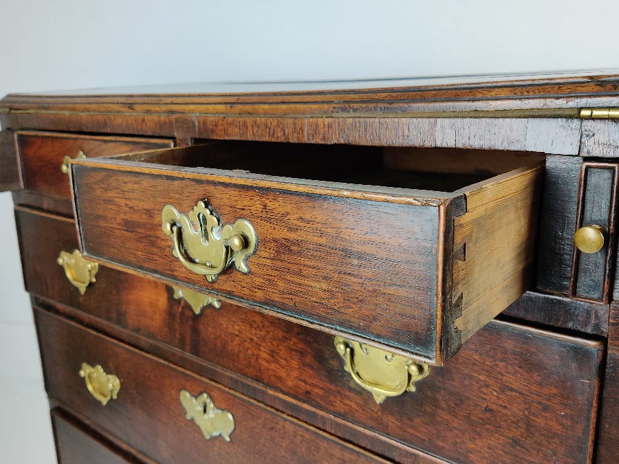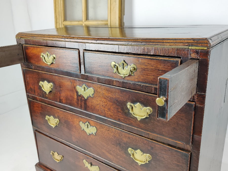 The term “bachelor chest” is used to describe a slim walnut or mahogany chest with this type of folder-over top. This term is now used more generally used to describe a small chest of drawers. Early original walnut and mahogany versions of this chest are rare, with some versions commanding very high prices.