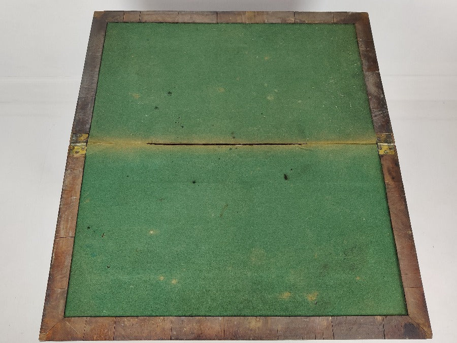 A rare fine English George I bachelor chest in black American walnut with fold-over top. Excellent original colour and patina. Great compact proportions. The solid walnut baize-lined top opens to provide either a games top or writing surface. Supported by two retractable lopers, either side of the two cock beaded pine lined drawers. Below a further three long graduated drawers, supported on bracket feet. The chest retains most of its original brasses (repaired). Other than a few repairs this chest is original throughout.