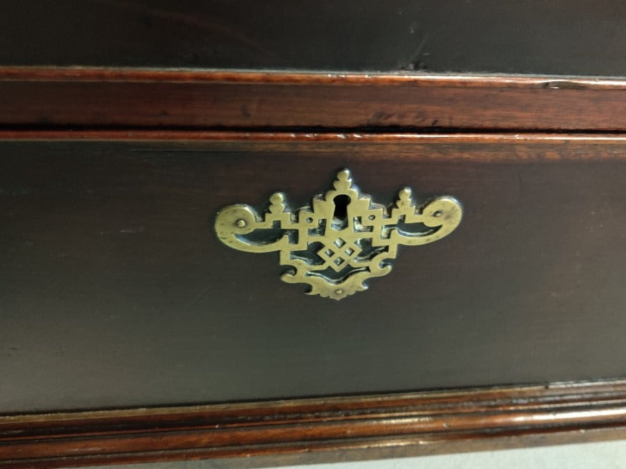 A fine rare mid Georgian Scottish Laburnum chest of drawers with original handles and escutcheons. Made from solid laburnum in two plank construction for the carcass with pine drawer liners and on later bracket feet.