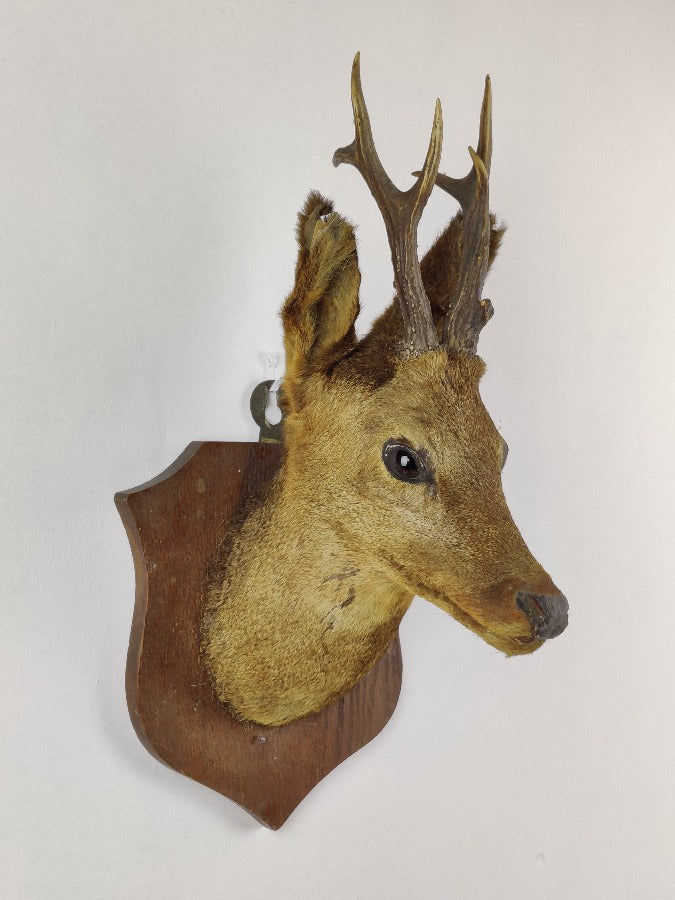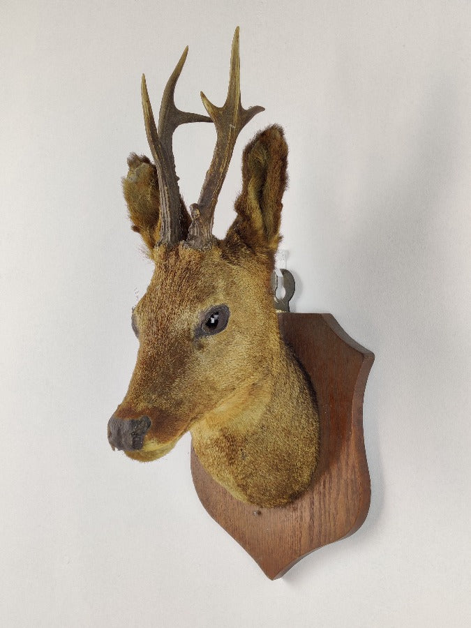 A good mounted Roe deer's head on oak plaque. Late 19th early 20th century.
